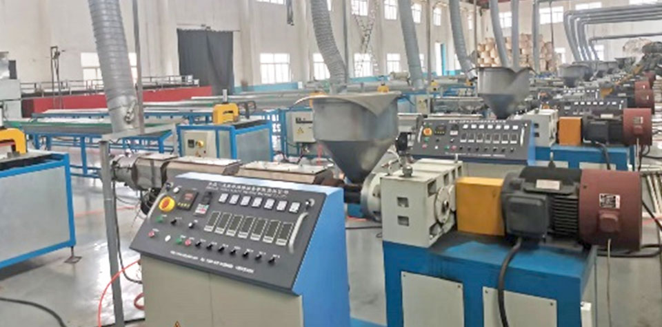 由于PPS樹脂自身加工溫度高、流動性差、成型溫度區間小的特點,PPS管的擠出成型在行業里一直是一個不小的難題,尤其是高填充后的改性導熱材料更增加了難度,為此公司的研發團隊通過與高校的密切合作和多年的實踐,不斷的改進設備、優化工藝終于攻克這一難關。該技術是由螺桿擠出機經過高溫(7個加熱模塊300~315℃)—加壓—定型—冷卻,從而得到成品的PPS管。